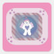 Envisagez un charmant autocollant de vacances avec un bonhomme de neige avec un casquette rose et violet, complété par des ailes d'anges roses, ressemblant à un ange de neige. Le bonhomme de neige s'accroche à un coeur violet, entouré d'une belle toile de fond rose rayée, parsemée d'étoiles roses et encadrée par une bordure rose vif.