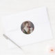 Un autocollant rond présentant une image agrandie et remastérisée numériquement de Sainte-Agnès tenant un agneau blanc. Sainte-Agnès est mentionnée dans le Canon romain.