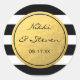 Autocollant Chic Noir & Blanc Rayé Feuille d'Or. Personnalisez avec n'importe quel texte.