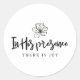 Autocollant chrétien | Dans Sa Prière Il Y A De La Joie | La citation du verset biblique résume magnifiquement un message profond d'espoir et de réconfort trouvé dans les Écritures. Cet autocollant inspirant présente la puissante phrase, mettant l'accent sur la fidélité indéfectible de Dieu dans nos vies. Parfait pour personnaliser votre journal, votre ordinateur portable ou votre bouteille d'eau, il sert de rappel quotidien de l'amour et du soutien divins, encourageant les croyants à embrasser leur foi même en des temps difficiles. Avec son design accrocheur et ses mots significatifs, cet autocollant n'est pas seulement une pièce décorative mais aussi un témoignage d'une croyance inébranlable qui résonne profondément au sein de la communauté chrétienne.