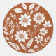 Un autocollant de style boho, très simple, avec de l'art floral monoline blanc sur un arrière - plan en terre cuite. Parfait pour les planificateurs, les enveloppes ou les emballages à l'ambiance rustique moderne.
