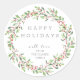Le design présente une couronne de houx à l'aquarelle. Joyeuses Fêtes est écrit en typographie grise moderne. Personnalisez cet autocollant avec votre propre texte.