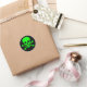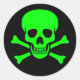 Autocollant noir avec un crâne jaune-vert brillant et des os croisés.