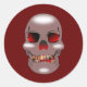 La conception montre la peinture numérique d'un crâne qui grince avec quelques dents laissées dans sa bouche et des trous rouges qui s'écoulent pour les yeux et le nez. Le design est placé sur un arrière - plan rouge foncé. Vous pouvez facilement changer la couleur de l'arrière - plan et / ou ajouter vos propres mots en cliquant sur le bouton "personnaliser".