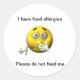 Cet autocollant d'allergie alimentaire comporte une bande dessinée "visage émotionnel" avec une expression malsaine et le texte "J'ai de l'allergie alimentaire - S'il vous plaît ne me nourrir" Idéal pour les jeunes enfants, coller à leur boîte à lunch ou vêtements pour une excursion d'une journée.