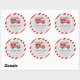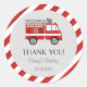 Sticker pour la fête d'anniversaire avec design de camion feu et combinaison de couleur rouge.