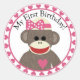 Autocollant d'anniversaire de fille de singe de