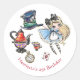 Ajoutez une touche d'enchantement à votre célébration d'anniversaire avec cet autocollant fantaisiste d'Alice au pays des merveilles ! Ce design charmant met en vedette une illustration charmante d'Alice, le chapeau emblématique du Chapelier fou, une théière décorative, de minuscules tasses à thé, une montre de poche ancienne et une carte à jouer, le tout réalisé dans un style artistique charmant. Parfait pour décorer les invitations, les faveurs de fête ou les albums de découpage, cet autocollant donne vie à la magie de Wonderland. C'est une façon merveilleuse de rendre chaque occasion d'anniversaire vraiment spéciale et inoubliable.