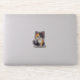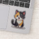 Chaton calico mignon dans le style chibi avec des reflets pastel kawaii, parfait pour les agendas, les journaux intimes et les cadeaux pour les amoureux des chats.