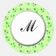 Un autocollant monogramme personnalisé avec un motif shamrock simple et élégant en vert irlandais avec trèfle à trois feuilles. Cliquez sur Customiser pour ajouter votre nom ou message personnalisé, modifier les couleurs des arrière - plans, etc.