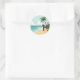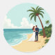Comprend 20 petits autocollants sur une feuille. Une illustration romantique d'un couple s'embrassant sur une plage sereine, entourée de palmiers et de la mer calme, parfaite pour ajouter une touche d'amour à n'importe quel espace.