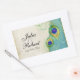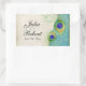 C'est un joint ou un autocollant élégant et sophistiqué de cadeau de faveur. Il mélange le meilleur de la tradition et la fraîcheur du contemporain. Le mélange des milieux peints à la main aux signes des plumes de dentelle et d'un paon d'oeuvre d'art d'aquarelle de contemporain peintes à la main par Audrey Jeanne Roberts donne une belle et intemporelle qualité à cette collection d'invitation. Comporter stylisé, paon watercolored par main fait varier le pas avec votre choix de couleur d'arrière - plan, montré ici dans le bleu turquoise. VOUS POURRIEZ ÉGALEMENT APPRÉCIER : ACCOMPLISSEZ LA COLLECTION À : INVITATIONS de http://www.zazzle.com/audreyjeanne/gifts?cg=196290129138184832 :