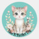 Une image adorable d'un chaton mignon avec des fleurs, est présentée sur cet autocollant rond. Avec le message "Passez une journée parfaite", cela fait un excellent autocollant à utiliser pour des envois spéciaux, le scrapbooking et plus encore !