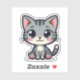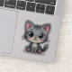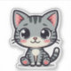 Chaton tabby gris kawaii mignon avec des yeux de chibi surdimensionnés et un charme pastel, idéal pour les autocollants, le scrapbooking et les cadeaux pour les amoureux des chats.