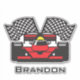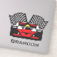 Sticker en Contour Conception Voiture Course avec texte facultatif, disponible en différentes tailles.