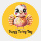 Un joli autocollant rond de Thanksgiving avec l'image d'un bébé dindon sur fond jaune. Avec le message "Joyeux jour de Dindon", cela le rend idéal pour envoyer cette carte spéciale de Thanksgiving par la poste, pour le scrapbooking ou pour la décoration !