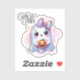 Ajoutez une touche de charme à vos célébrations d'Halloween avec cet autocollant de fantôme effrayant-cute, mettant en vedette un fantôme de dessin animé joyeux tenant une citrouille souriante. Avec des yeux scintillants, un nœud multicolore et entouré d'étoiles fantaisistes, de cœurs et de petits crânes, cet autocollant est le mélange parfait de festivités et de mignonnerie.