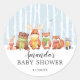 Autocollant mignon de faveur de baby shower d'animaux de région boisée d'hiver pour un baby shower de garçons. Notre autocollant mignon de baby shower de forêt comportant une bière, des cerfs communs, un renard, un lapin, un raton laveur, et un orignal. Articles assortis disponibles dans notre magasin.