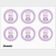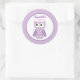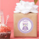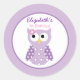 Un petit hibou mauve doux avec une fleur rose. Cet autocollant rond mignon est customisé avec vos propres 2 lignes de texte.