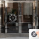 Autocollant de fenêtre d'entreprise blanc tendance et professionnel. Ajoutez le nom et les détails de votre entreprise en cliquant sur "PERSONNALISER".
