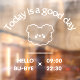 Un autocollant de bienvenue tendance avec des vibrations joyeuses pour votre café, avec un texte gras et des heures d'ouverture. Nom, slogan et heure personnalisables – parfait pour les vitrines élégantes qui veulent faire une déclaration ! Égaiez votre espace et dites « bonjour » avec style.