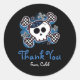 Autocollant de fête à motif à carreaux bleus et crâne. Personnalisez avec n'importe quel texte. Articles assortis dans ma boutique.