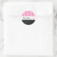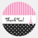 Autocollant de fête à pois et rayures roses de Paris. Personnalisez avec le texte de votre choix. Articles assortis disponibles.
