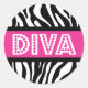 Autocollant de fête à typographie DIVA à impression rose et zèbre
