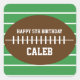 Autocollant de fête d'anniversaire rayé vert football. Personnalisez avec n'importe quel texte.