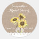 Cet élégant autocollant est idéal pour célébrer une Fête des mariées avec un thème rustique. Il présente des tournesols dans un bocal de maçon sur un arrière - plan de texture de burlap. Le bord du pétoncle en bas ajoute un aspect vintage chic. Utilisez-le pour des faveurs de fête ou pour sceller des enveloppes. Ajoutez les détails de votre fête.