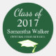 Arrière - plan vert foncé avec lettrage blanc crée un autocollant de graduation personnalisé audacieux. Classe de puis l'année de graduation commence l'autocollant. Le nom du diplômé et le lycée suivent. Un bouchon blanc de graduation en vert citron vient compléter cet autocollant personnalisé de graduation. Une variété de polices contemporaines donne à cet autocollant une ambiance moderne. Utilisez-le comme sceau d'enveloppe sur les invitations et les annonces de remise de diplômes. Il aurait l'air de décorer un tableau de mortier aussi!