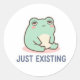 Grenouille mignonne minimale avec le texte “JUSTE EXISTANT”. Parfait pour les humeurs calmes et neutres.