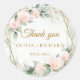 Roses roses blush boho et cadre doré floral classique autocollant rond monogramme