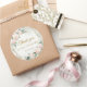 Roses roses blush boho et cadre doré floral classique autocollant rond monogramme