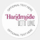 Fait à la main avec étiquette de colis Love. Cette vignette postale pour petites entreprises est facile à customiser si vous voulez ajouter du texte supplémentaire comme votre nom d'entreprise, votre site Web, merci pour votre commande ou votre adresse de retour par exemple. Le design est lettré avec élégante calligraphie et typographie lunaire. Si vous voulez le garder simple avec juste "Fabriqué à la main avec l'amour" et pas de libellé personnalisé, il suffit de supprimer l'exemple de texte et de laisser les cases modèles blanches. Si vous souhaitez modifier les couleurs, cliquez sur "customiser plus loin".