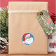 Cet autocollant festif de Holiday met en vedette un Père Noël afro-américain, avec un casquette rouge et blanc, un sgrig saint et une barbe blanche qui coule, le tout sur un arrière - plan de flocon bleu. Idéal pour les enfants, la correspondance et les forfaits cadeaux.