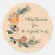 Autocollant Joyeux Noël personnalisable avec agrumes et verdure traditionnelle, avec arrière - plan et texte contrastés.