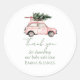 Autocollant de Noël rond rose et voiture & arbre