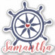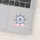 Ce thème marin avec roue de bateau, cœur au centre en bleu marine, nom en rouge. Idéal pour votre ordinateur, bouteilles d'eau, bagages ou tout ce que vous voulez ajouter à cet autocollant étoile de mer.