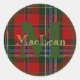 Scellez vos cartes de notes personnalisées avec un autocollant conçu pour la gamme de cartes ClanCastles. Le rond ou le carré fonctionne mieux avec le design. Le tartan rouge populaire du clan écossais MacLean forme l'arrière - plan. Un grand "M" dans une police en gras en vert. La lettre de monogramme et le nom peuvent être changés en votre propre nom. Le nom est dans une police ouverte correspondante — en or. Deux cercles verts assortis encadrent le design. Naturellement, ces autocollants polyvalents peuvent être apposés sur tout ce qui attire votre imagination ainsi que sur les cartes de notes pour lesquelles il est conçu. Le tartan est sous le droit d'auteur de la Couronne du Scottish Register of Tartans.
