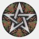 Pentagramme celtique artistique en métal argenté poli. Dragons respirant le feu en rouge et vert. Défilement d'angle complexe. Un don élégant pour les Wiccans, les Pagans, adeptes des religions de la terre.