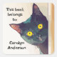 Autocollant de plaque de livre à motif de chat qui regarde avec texte personnalisable.