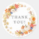 Belle étiquette de remerciement de douche de mariage avec une couronne de feuilles d'automne avec des citrouilles.