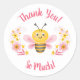Un adorable bourdon rose et jaune avec des fleurs et les mots Merci beaucoup décore cet autocollant.