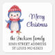 Adorable manchot bleu et blanc portant un bonnet et une écharpe rouges tricotés avec un vœu Joyeux Noël orne ces autocollants de scellage d'enveloppe de retour d'adresse carrée moderne. Économisez de l'argent avec vingt autocollants carrés de 3,8 cm ou six de 7,6 cm pour les colis et les étiquettes d'adresse de retour. Meilleur rapport qualité-prix... l'achat minimum est d'une seule feuille. Modifiez facilement le texte à l'aide du modèle fourni. Si vous avez besoin de plus d'espace, utilisez des lettres minuscules. Correspond à de nombreux autres articles de la collection. Voir "À propos de ce produit" sur le côté pour plus d'informations.