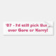 Autocollant De Voiture '07 - Je sélectionnais toujours Bush au-dessus de