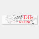 " Je ne mourrais jamais pour mes croyances parce que je pourrais être" ~ faux Bertrand Russell. Bien que pas un sceptique lui-même, Russell ait écrit beaucoup dessus si nous pouvons savoir n'importe quoi pour certain. Annoncez votre propre bonne volonté de douter du dogme à n'importe qui qui monte votre pare-chocs avec cet adhésif pour pare-chocs !