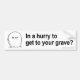 Je pense que 99% de la population canadienne sait qu'expédier et non-respect des distances de sécurité sont des activités dangereuses. Cette conscience n'affecte pas le comportement de beaucoup de conducteurs. Là ils sont, mettant non seulement leurs vies en danger mais les vies de ceux autour de elles aussi bien. Donnons les chauffards et les tailgaters une certaine perspective. Adhésif pour pare-chocs d'humour/confrontation avec la réalité - pressé pour obtenir à votre tombe ?