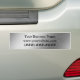 Un adhésif pour pare-chocs personnalisable avec un effet en aluminium balayé en métal pour annoncer vos affaires.