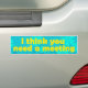 " Je vous pense le besoin adhésif pour pare-chocs sobre de sobriété de récupération d'une réunion" (Bumpersticker) - ceci est quand le conjoint, QUELQU'UN D'AUTRE vous rend nuts ! Envoyez votre conjoint, le type derrière vous, vos ennemis À UNE RÉUNION ! ! Signe, signe ! La récupération est au sujet de "aller aux réunions" ! Tout l'ANONYME - alcooliques anonymes, narcotiques anonymes, CA, Sur-Mangeurs anonymes, joueurs anonymes, etc. Pourquoi soyez anonyme ? ! Montrez-la sur votre voiture ou ailleurs ! Donnez à d'autres le message - peut-être vous aiderez quelqu'un obtenir/séjour propre et sobre. Si vous/quelqu'un d'autre est déjà dans la récupération, rappelez-les. Faites-les rire, peut-être ? ! Soyez fier de elle. Ce sont grands pour vous-même ou car les cadeaux pour quelqu'un d'autre dans la récupération pour les faire vous connaître apprécient leur sobriété.